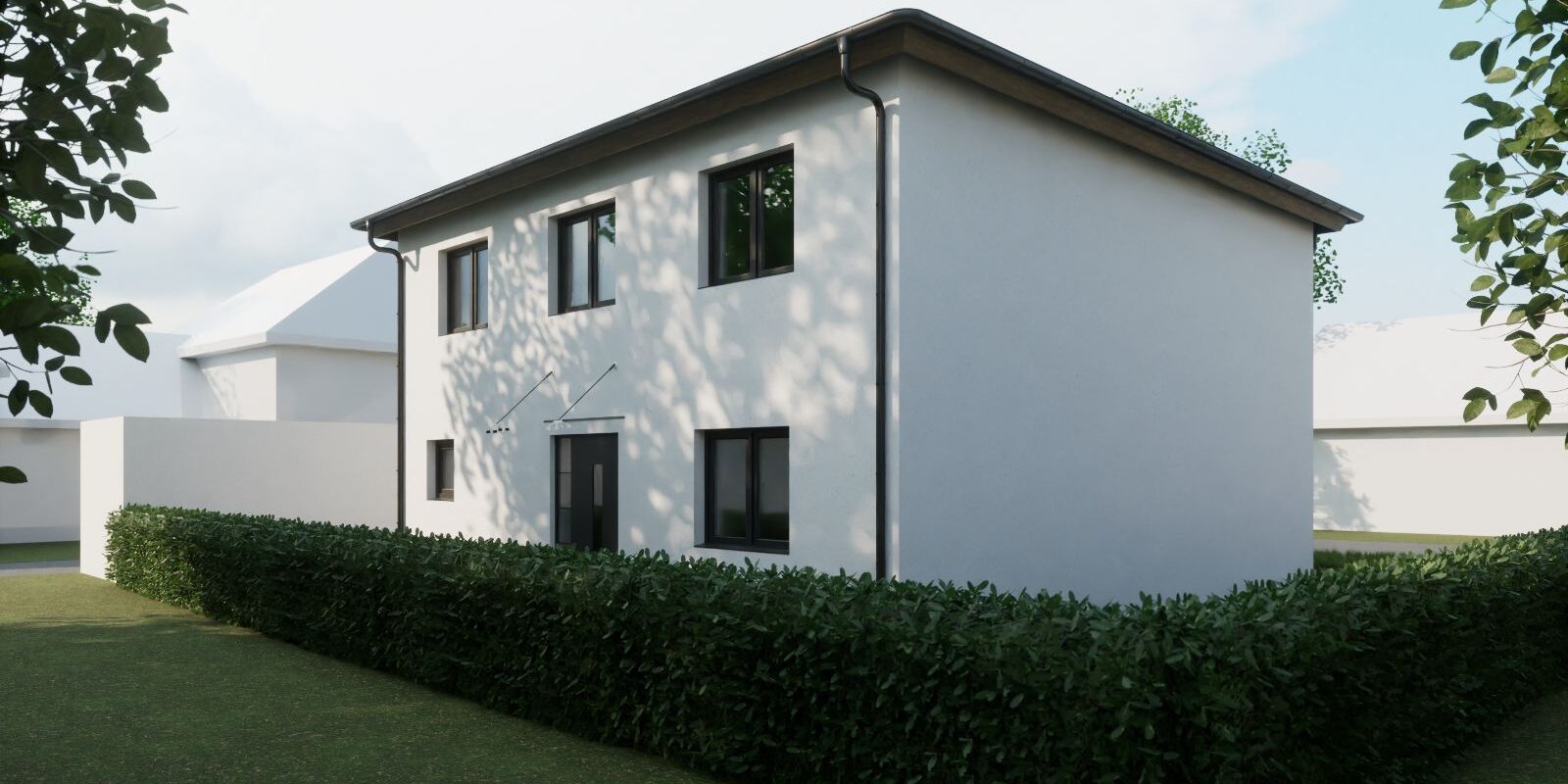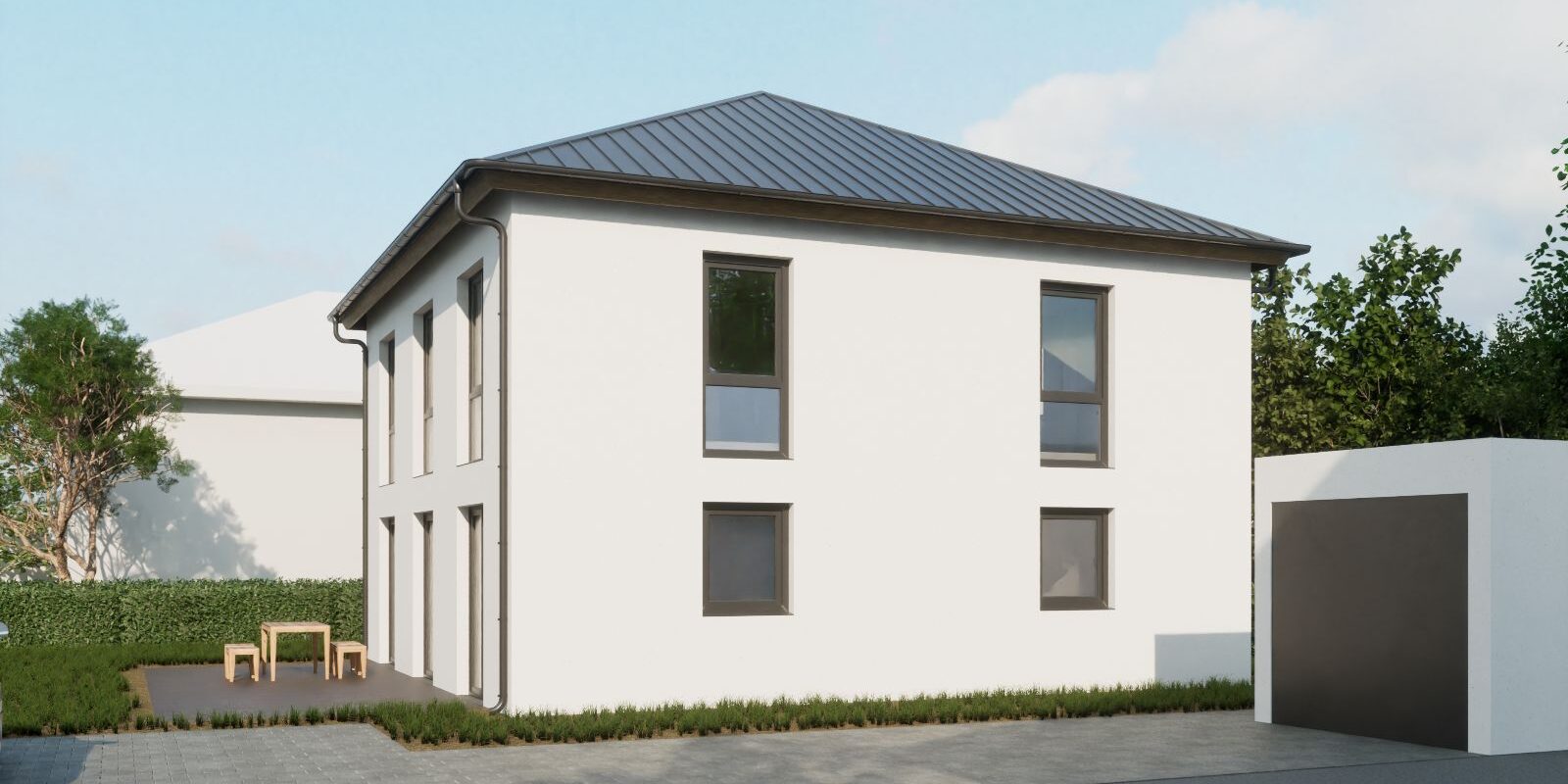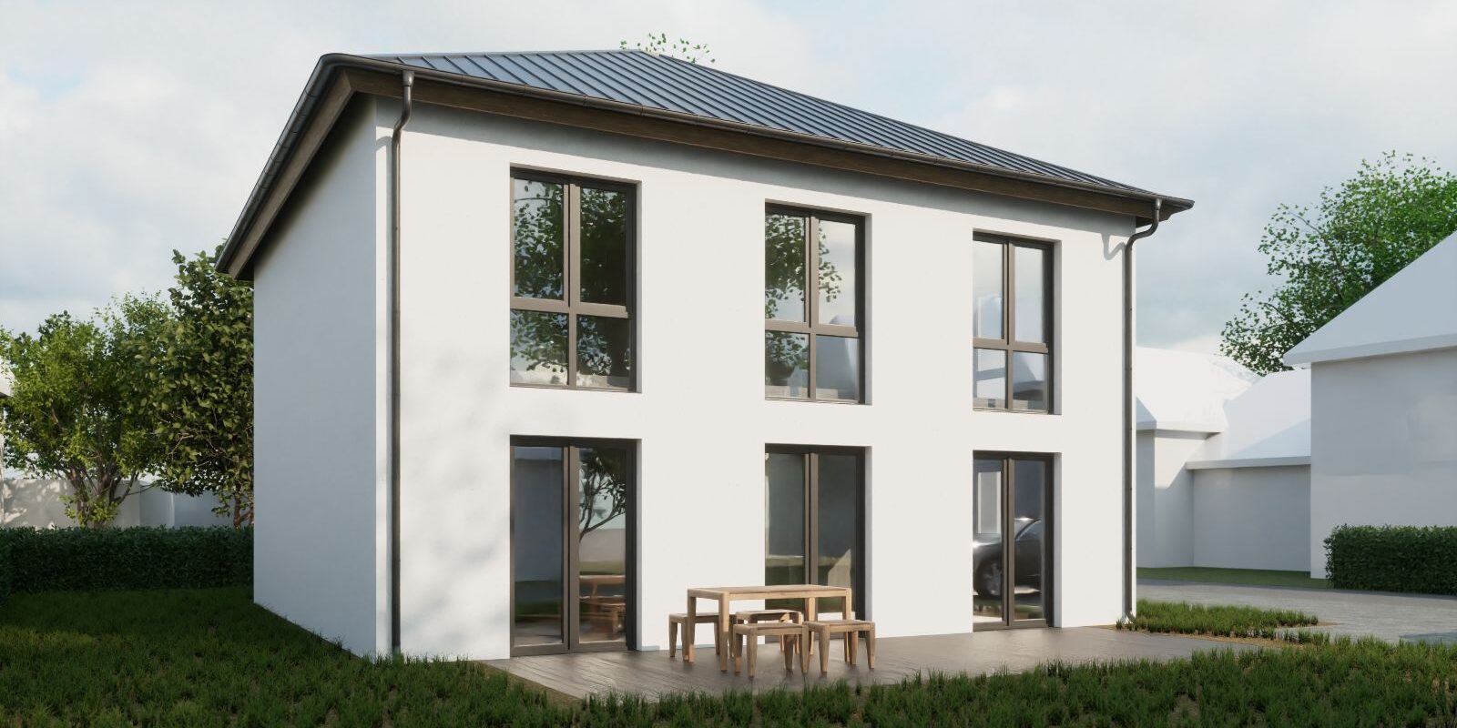 Es entsteht ein Neubau mit einer Wohnfläche von ca. 150m². Im Erdgeschoss beeindruckt das Haus mit einem geräumigen Wohnbereich. Vom Wohnzimmer aus erreichen Sie die traumhafte Terrasse mit Garten. Ein Gäste-WC befindet sich im nahe des Eingangs. Im Obergeschoss finden Sie Platz für drei Schlaf- bzw. Kinderzimmer sowie ein Büro. Zudem haben Sie ein geräumiges Badezimmer mit Dusche und Badewanne. Die exklusive Ausstattung des Bads, die Fliesen die Türen und die Bodenbeläge können Sie selbst aus der Kollektion des Bauträgers wählen – somit können Sie sich Ihr Eigenheim nach Ihren Wünschen selbst bemustern. Die Beheizung erfolgt durch eine Luft-Wärmepumpe. Eine PV-Anlage mit 7 kW ist inklusive.