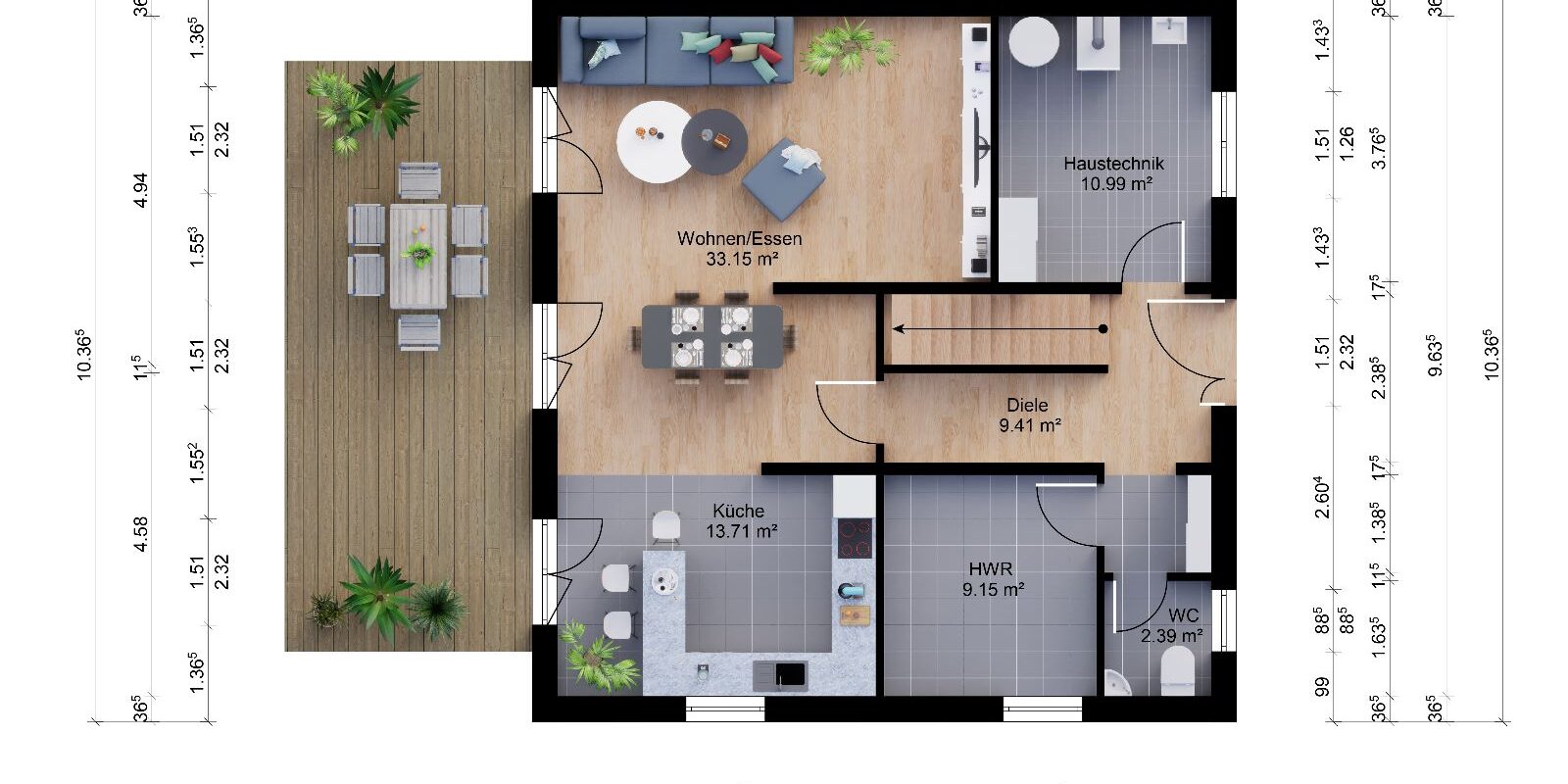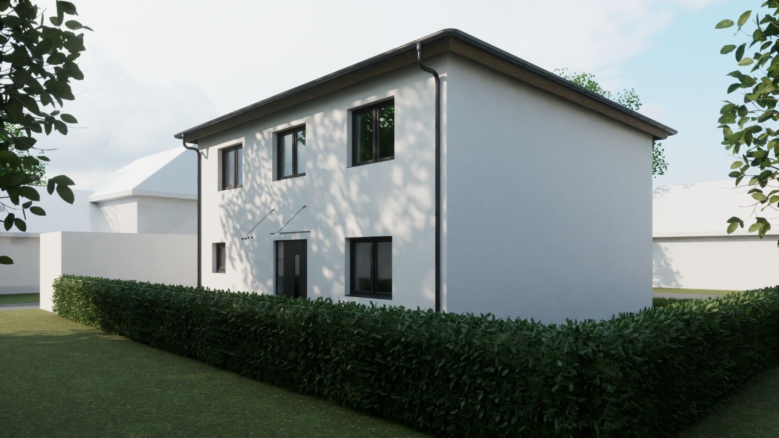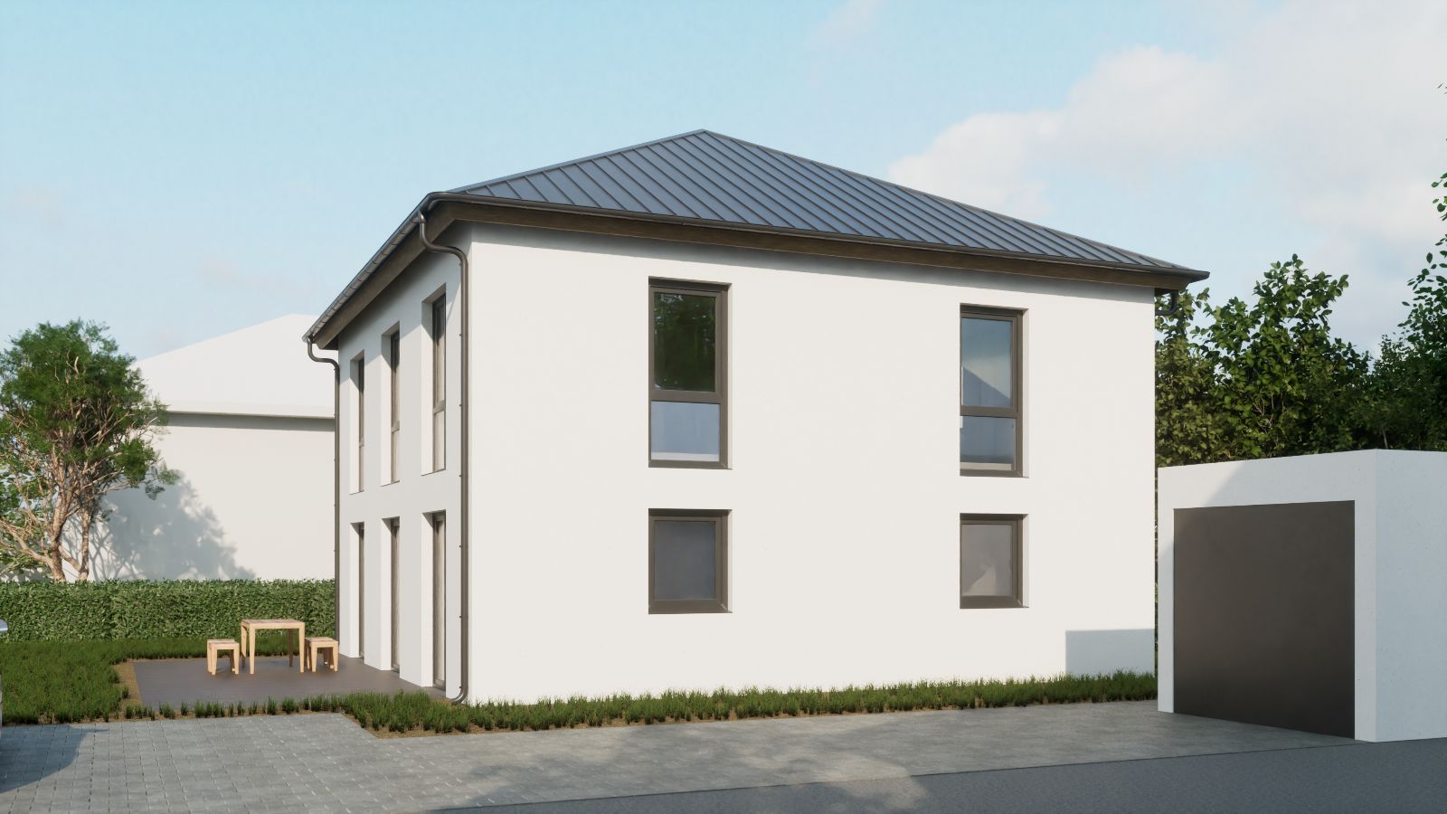 Es entsteht ein Neubau mit einer Wohnfläche von ca. 150m². Im Erdgeschoss beeindruckt das Haus mit einem geräumigen Wohnbereich. Vom Wohnzimmer aus erreichen Sie die traumhafte Terrasse mit Garten. Ein Gäste-WC befindet sich im nahe des Eingangs. Im Obergeschoss finden Sie Platz für drei Schlaf- bzw. Kinderzimmer sowie ein Büro. Zudem haben Sie ein geräumiges Badezimmer mit Dusche und Badewanne. Die exklusive Ausstattung des Bads, die Fliesen die Türen und die Bodenbeläge können Sie selbst aus der Kollektion des Bauträgers wählen – somit können Sie sich Ihr Eigenheim nach Ihren Wünschen selbst bemustern. Die Beheizung erfolgt durch eine Luft-Wärmepumpe. Eine PV-Anlage mit 7 kW ist inklusive.