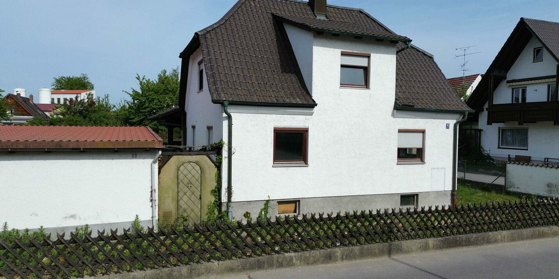 Dieses Wohnhaus wurde im Jahr 1935 errichtet und im Jahr 1976 durch einen Anbau erweitert, was es zu einem vielseitigen Anwesen macht. Es kann sowohl als Einfamilienhaus mit Büro oder Einliegerwohnung genutzt werden. Es verfügt über zwei separate Zugänge sowie eine Garage für zwei Autos mit Zufahrt von der Resedenstraße. Das großzügige Grundstück bietet viel Platz und beinhaltet einen Gartenbereich mit einem Schuppen für Fahrräder und Gartengeräte.