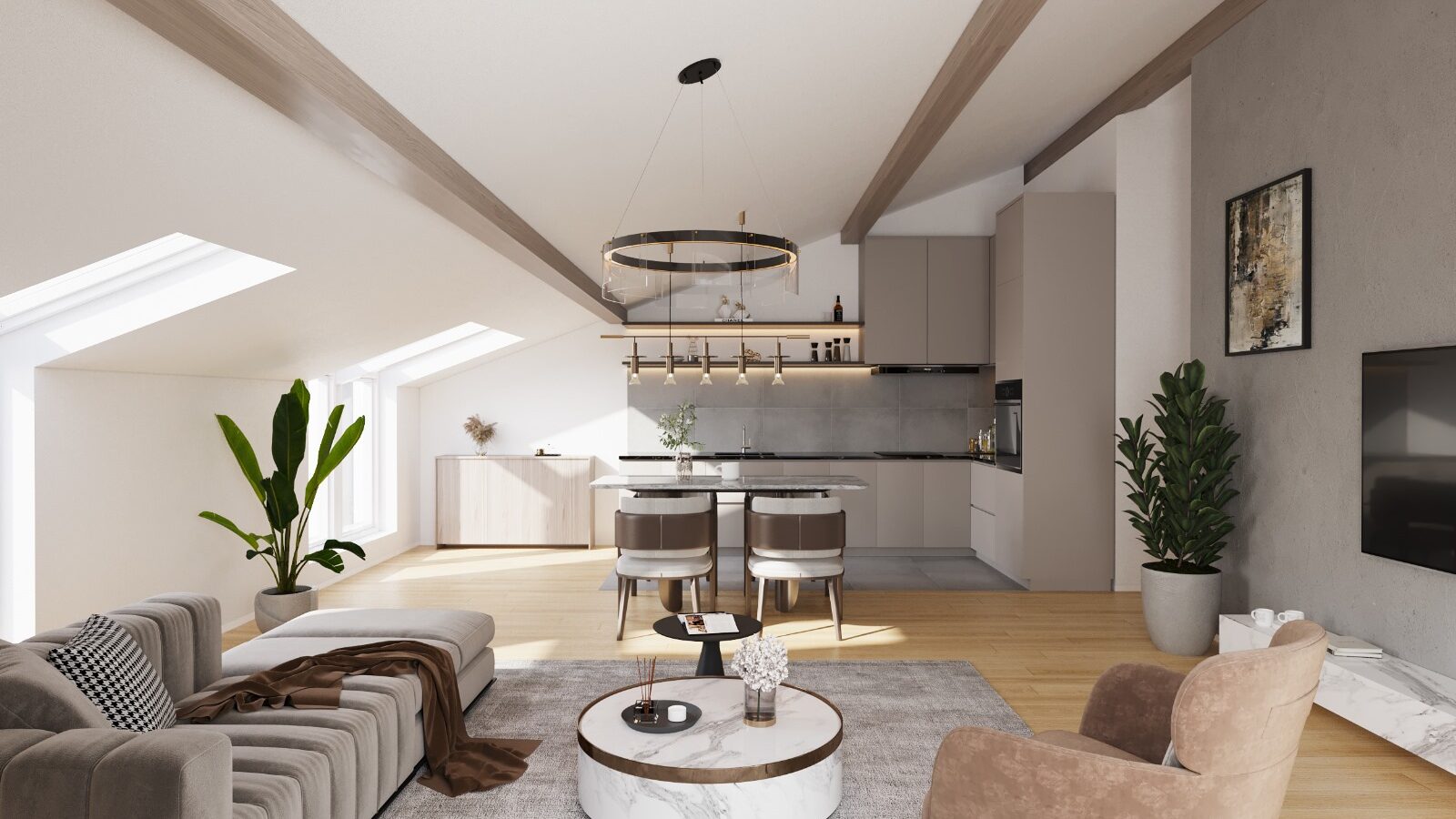 Die Wohnung Spinnsee präsentiert isch mit einem großzügigen und gut durchdachten Grundriss. Der offene Wohn-, Koch- und Essbereich schafft eine luftige Atmosphäre, während die beiden separaten Schlafzimmer und der multifunktionale Flur als Garderobe genutzt werden können. Ein zusätzlicher Abstellraum mit 4,2m² bietet Platz für Lebensmittel und Co. Das Badezimmer ist komplett ausgestattet mit WC und Dusche. Besonders hervorzuheben ist die fast 20m² große Terrasse, die nach Süd-Westen ausgerichtet ist und somit den idealen Ort für entspannte Abende nach einem ereignisreichen Arbeitstag bietet. Der Zugang zur Wohnung erfolgt über einen externen Laubengang an der Ostseite des Gartenanbaus im hinteren Teil des Grundstücks, was zusätzlich Privatsphäre und Ruhe garantiert. Die Wohn- und Schlafräume präsentieren sich mit hochwertigem Holzboden, während in den Nassräumen moderne Fliesen zum Einsatz kommen. Die Wohnung verfügt über eine dezentrale Lüftungsanlage sowie Fußbodenheizung für maximalen Komfort. Die Fenster sind innen weiß gestaltet und mit elektrisch betriebenen Außenrollläden ausgestattet. Diese Immobilie überzeugt nicht nur durch ihr modernes Design und die hochwertige Ausstattung, sondern auch durch das durchdachte offene Raumkonzept, das ein harmonisches Wohngefühl schafft. Entdecken Sie den Komfort und die Annehmlichkeiten dieser Wohnung, die ideal ist für anspruchsvolles Wohnen.