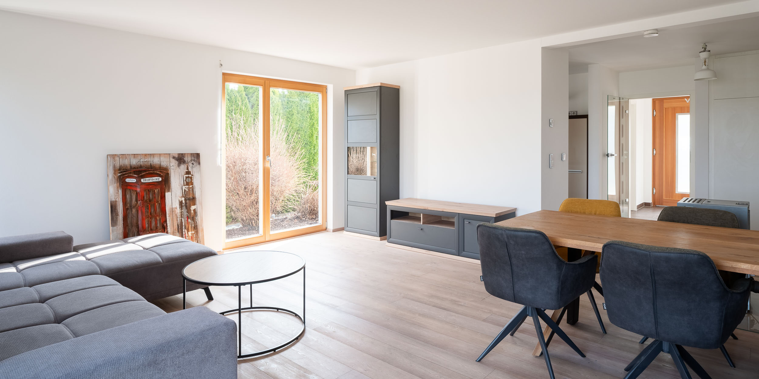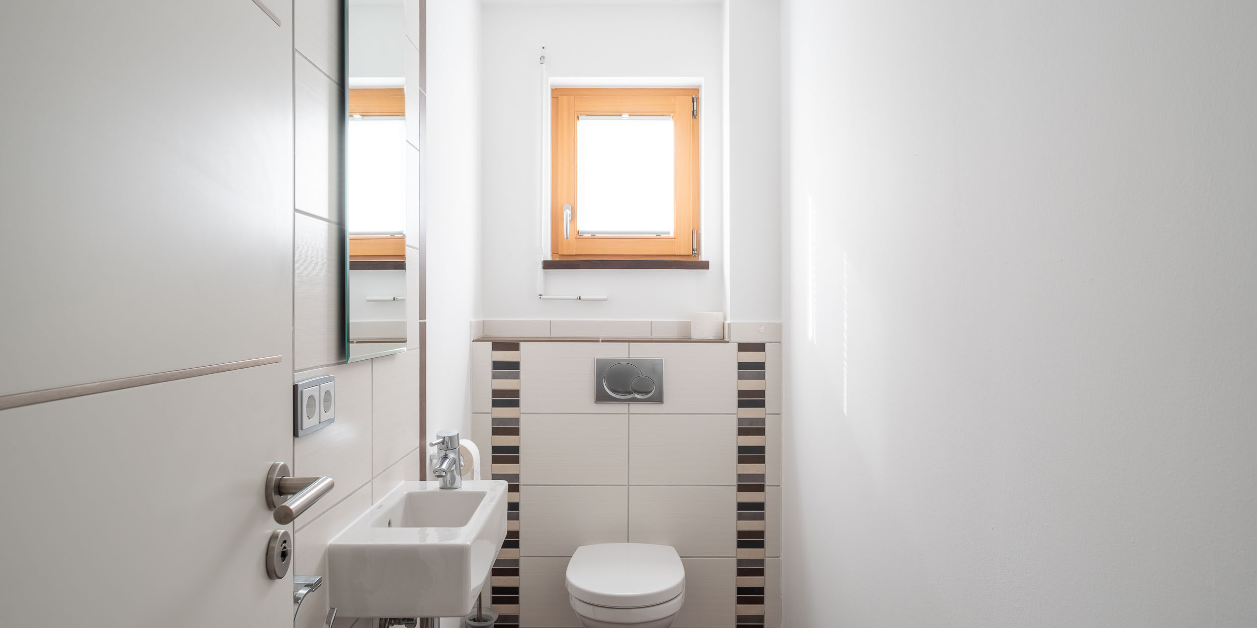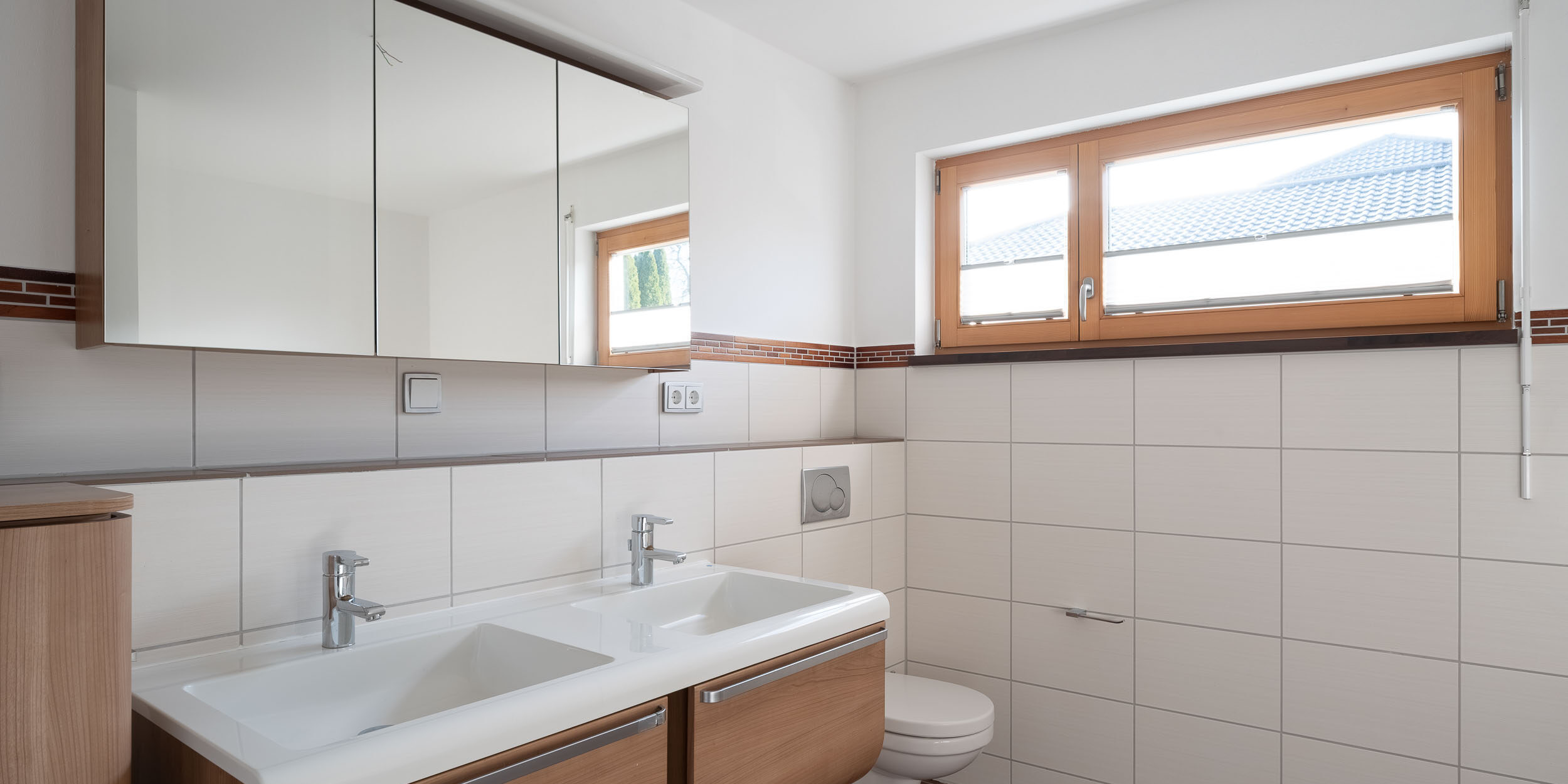 Das großzügige Badezimmer mit Dusche und Wanne sowie eine separate Toilette bieten zusätzlichen Komfort im Alltag. Alles auf einer Ebene – effizient, gemütlich und nachhaltig.