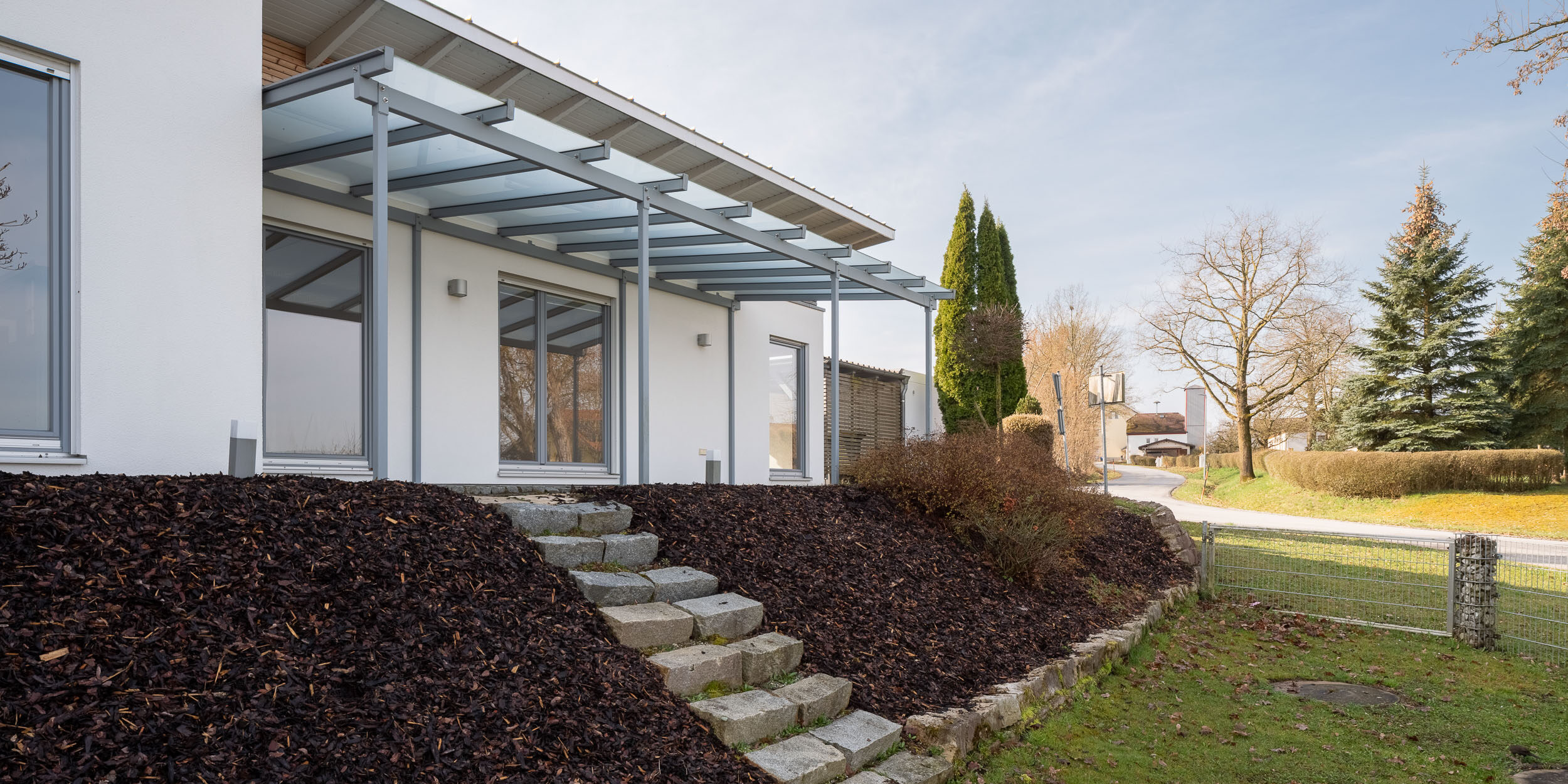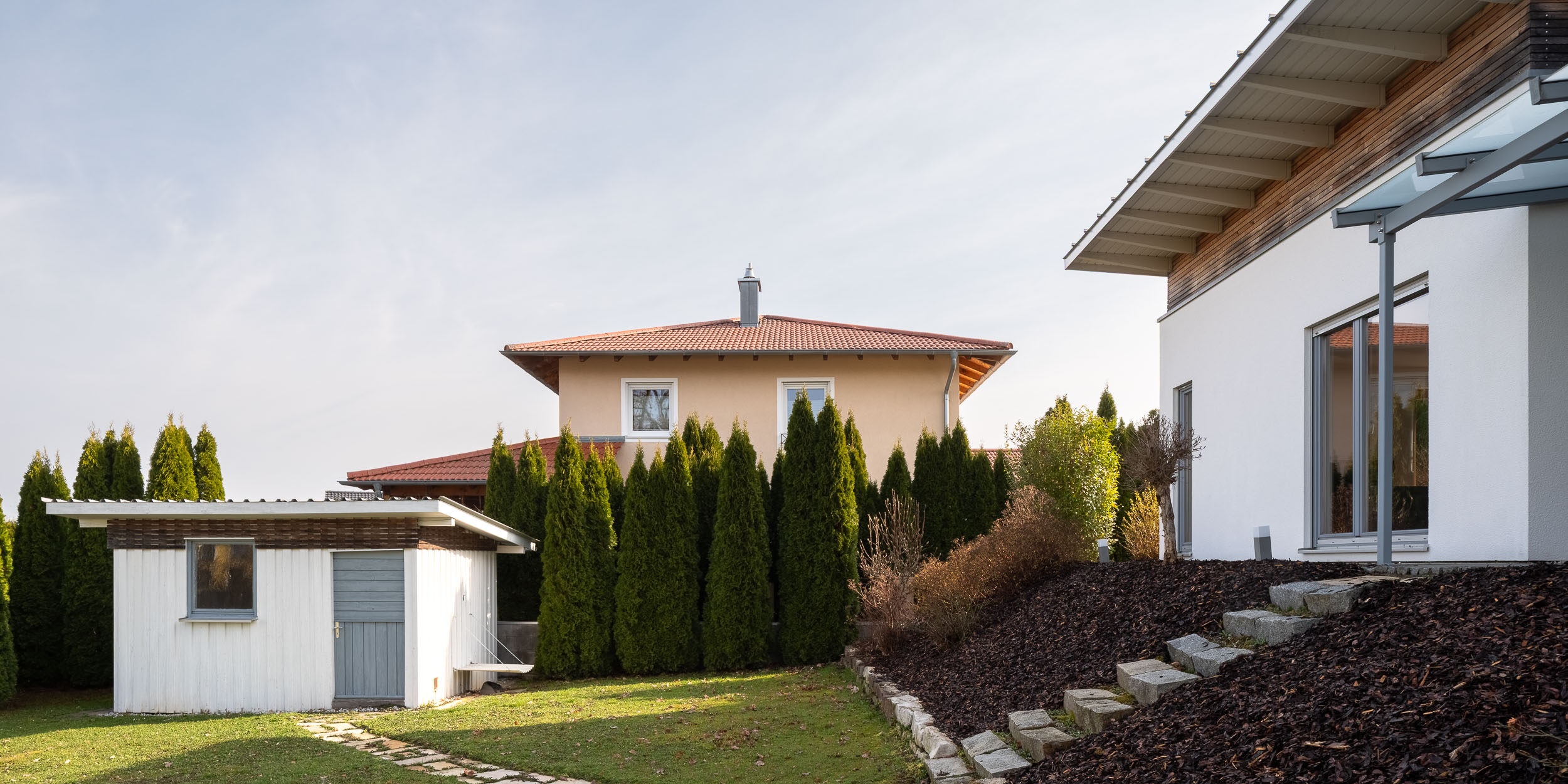 Das 512 m² große Grundstück bietet reichlich Raum zum Leben, Entspannen und Gestalten. Eingebettet in eine ruhige, grüne Umgebung genießen Sie hier viel Privatsphäre und Natur direkt vor der Haustür. Ob Gartenarbeit, Spielen mit den Kindern oder gemütliche Stunden auf der Terrasse – das Grundstück lässt keine Wünsche offen und bietet auch genügend Platz für verschiedenste Hobbys und Freizeitaktivitäten im Freien. Praktisch und komfortabel präsentiert sich auch die Außenanlage: Ein überdachter Eingangsbereich schützt zuverlässig vor Wind und Wetter, während das Carport und die zusätzliche Garage für ausreichend Stellfläche sorgen – ideal für Auto, Fahrräder, Werkstatt oder Stauraum.